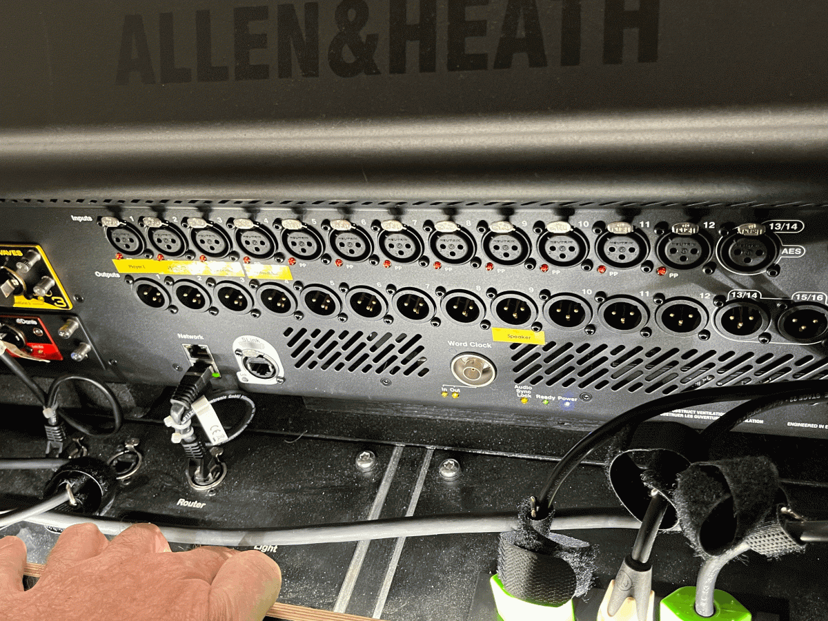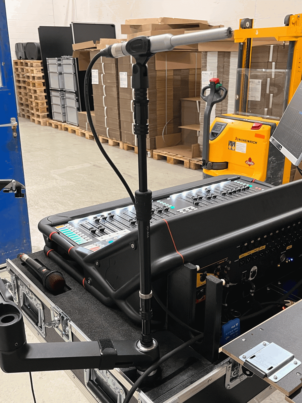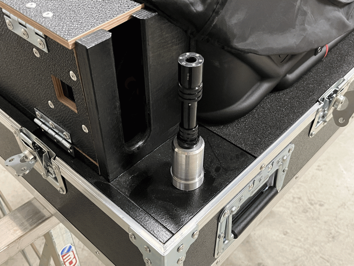 Unterkonstruktion wurde mit 15mm Multiplex gebaut. Auflager aus 30mm Plastazote mit Frässungen welche die Gummifüsse der Avantis aufnehmen und so ein Verrutschen verhindern. Schublade mit Apple-Tastatur und Mousepad. Unten 2 x 2HE für eine Rackschublade und eine Rackablage. Verbaut wurde ein MacMini als Hostcomputer und zwei Waves Mobile-Server. Im Doghaus zwei eigene Blenden gebaut für die diversen Verbindungen. Aluteile gedreht welche links und rechts zwei Ergotron-Arme für einen Screen und eine Labtopablage aufnehmen können. Oben jeweils Triad-Orbit Quicklook Adapter für ein Messmikrofon und einen kleinen aktiven Lautsprecher. Im Doghouse eine LED-Beleuchtung verbaut um auch in dunkler Umgebung verkabeln zu können. Auch die Rackschublade wird über einen LED-Streifen beleuchtet. Im Case ist auch ein Apple Airport Express verbaut