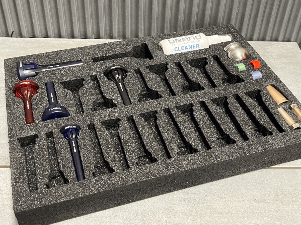 Wir durften für Brand Mundstücke ein neues Inlay für seine Musterkoffer erstellen. Vielen Dank