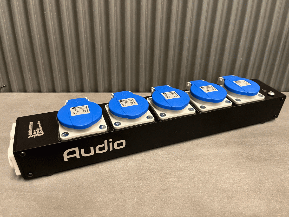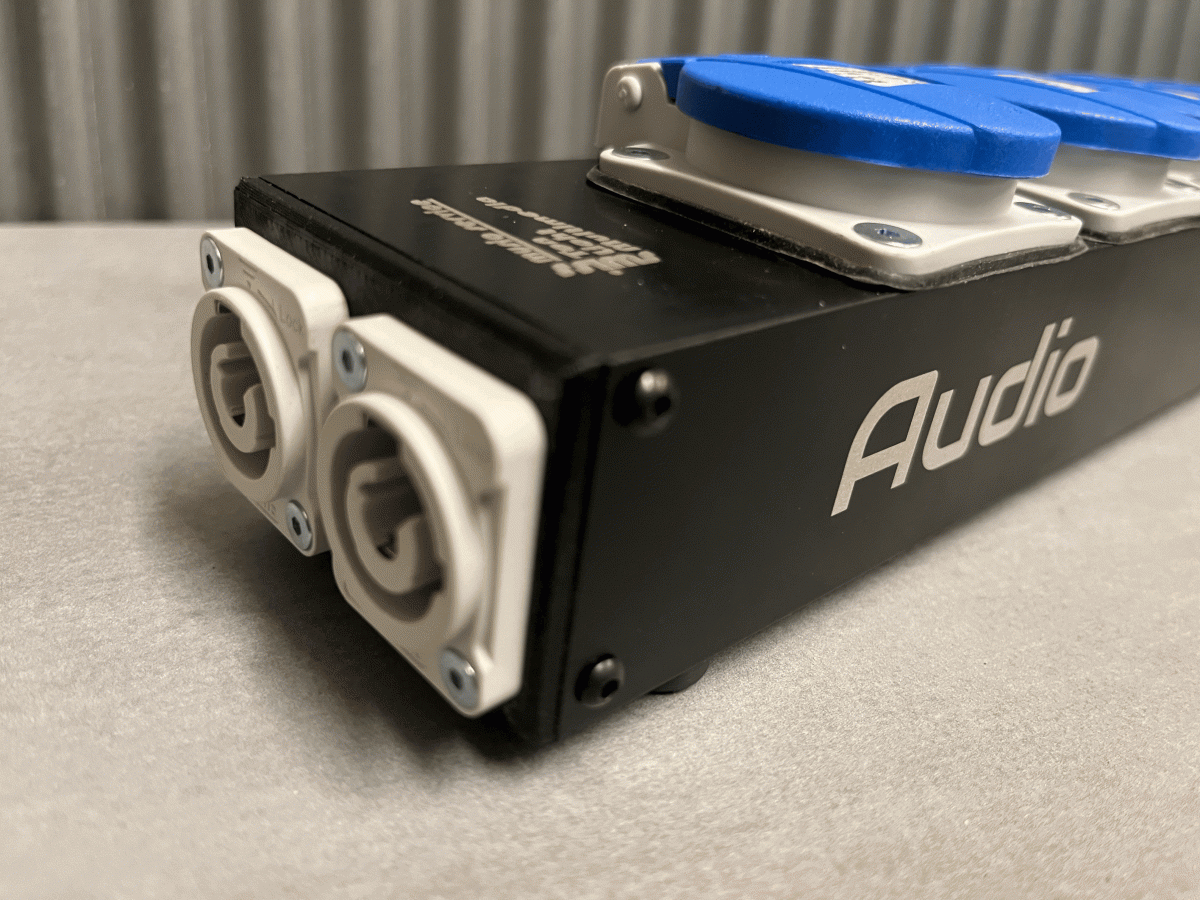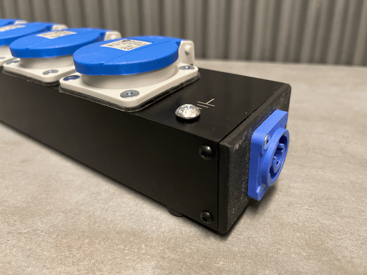 Hier mal unsere neue Steckleiste. Schwarz eloxiert und Laserbeschriftet, mit Powercon Eingang und 2 Ausgängen. Kunden können die die Farbe und Beschriftung auswählen. Bei den hier verwendeten Steckern handelt es sich noch um Restbestände der alten Version von IP54 Steckdosen die wir selber noch für uns verwenden. Die neuen werden mit den neuen IP54 Steckdosen bestückt. Auch Versionen mit Schucko oder anderen Ländersteckern sind möglich. Ebenso können wir Steckleisten mit Rahmensteckdosen herstellen. Bei diesem Produkt kommen verschiedene Verfahren zum Einsatz. CNC-fräsen, 3D-Druck und Laserbeschriftung. So können wir individuelle Lösungen anbieten.